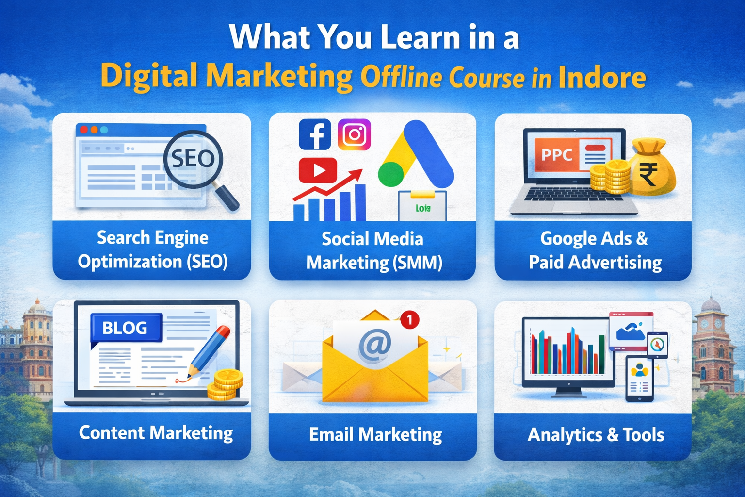 Indore is growing as an education and business hub. Many students, job seekers, working professionals, and business owners are choosing offline digital marketing courses to gain hands-on experience and industry knowledge.